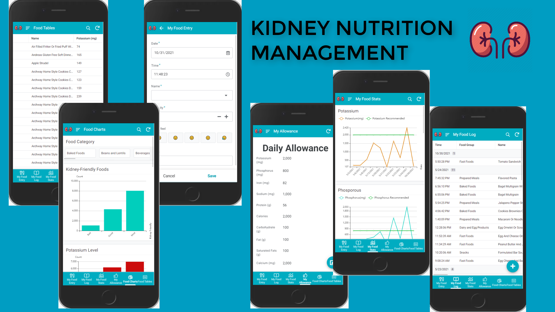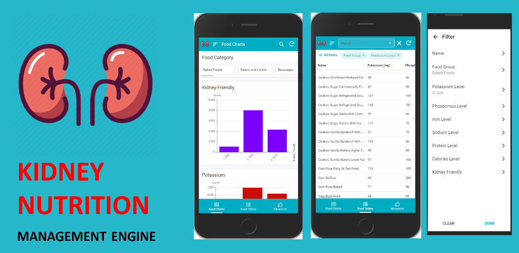 The Kidney Nutrition Management App helps manage Chronic Kidney Disease with intelligent food choices and a feedback mechanism that compares daily intake to recommended values.